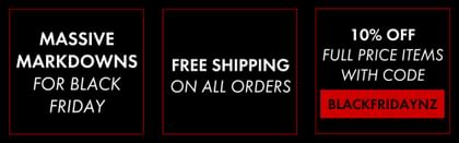 The BLACKFRIDAYNZ code is valid for a 10% discount. It applies exclusively to full-priced items when the code BLACKFRIDAYNZ is entered in the Coupon Code field at checkout.